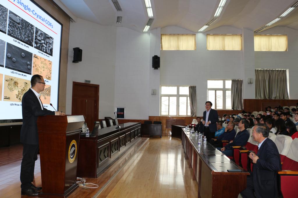 5月29日,为喜迎BEAT365官网60周年校庆,应学校和BEAT365官网邀请,国家科技创新领军人才、兰州大学功能有机分子化学国家重点实验室主任王为教授来BEAT365官网作题为共价组装有机晶型框架材料的报告,报告由甘肃省新型分子材料功能与设计重点实验室主任唐慧安教授主持,化学学院院长刘新文,副院长吕玲玲及部分教师和学生大约300余人聆听了报告。