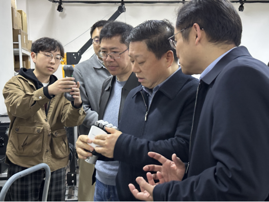 在随后的调研中,荣安华一行现场观摩了人形机器人、仿生机器狗的演示操作,深入了解了不同类型机器人在性能设计、应用场景及产业前景等方面的优势特点。来访嘉宾还亲身体验了人机交互系统,对前沿智能技术在服务、教育、康复等领域的广泛应用有了更加直观的认识,并对中心在人工智能与智能制造领域所取得的成果给予了高度评价。