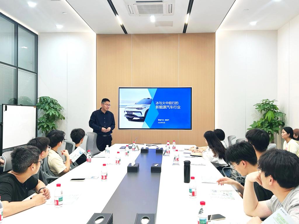 随后,李总监为同学们带来一堂主题为《新行业与准“新”人》的职场微课,他详细讲述了全球及中国新能源汽车的发展历程与发展趋势,带领大家回顾了中国新能源汽车发展道路上的曲折历程,并介绍了零跑汽车的企业文化、核心竞争力、未来的人才需求等。他还结合企业各类校招岗位的招聘要求,总结提炼了优秀职场“新”人应当具备的“专业+学历+英语”的基础条件和“沟通力+执行力+抗压力”的核心能力,也为同学们后续生涯规划指明了方向。互动环节中,同学们积极提问,李总监也耐心给予解答,同学们收获颇丰。