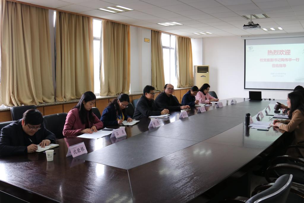 3月18日下午,校党委副书记陶伟华与校党委宣传部、学工部、研工部、招生与就业指导处、校团委等相关职能部门负责人一行来365英国官网进行学生工作调研。365英国官网党委书记潘海鹏、副书记苏丽辉做了专题报告。