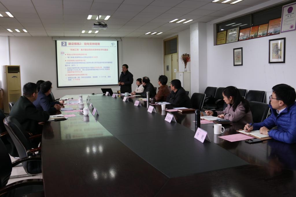2月28日下午,副校长郜正荣、重点高校建设办公室副主任、发展规划处副处长江国华和人事处副处长王尧骏一行到机控学院调研重点大学建设和人才工作,学院党政班子成员、办公室主任、科研秘书参加调研会议。会议的主题是“学院重点大学建设和人才工作情况”,会议由潘海鹏主持。