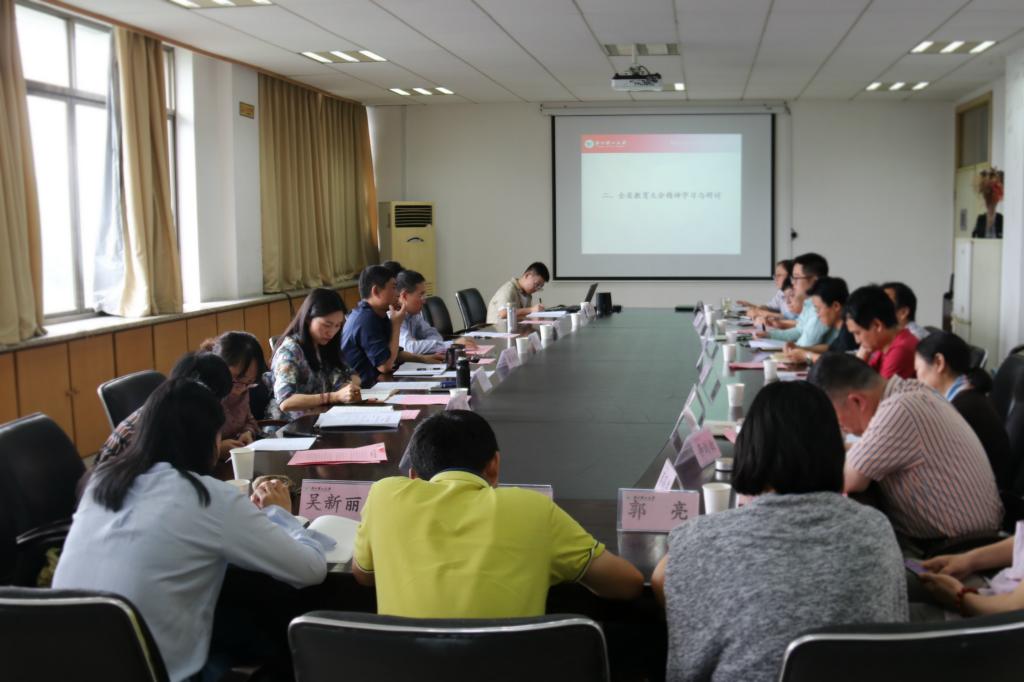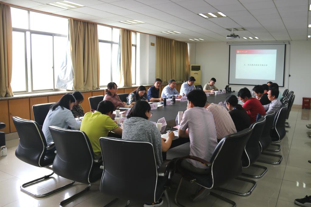 首先, 与会人员一起观看了《中国共产党党员教育管理工作条例》系列动漫,结合支部实际工作,对党员教育管理的基本任务和主要方式进行重点学习。随后,苏丽辉就学院党支部标准化建设二轮评定工作情况作一反馈,对评定工作中发现的支部在学习计划、主题教育、规范管理、台账记录等方面的问题逐一进行说明,并提出整改要求。其后,学院学习强国管理员王淯霄公布了近一周各支部学习情况,并从学习方法和基本要求等方面对学习强国的使用进行培训。之后,各党支部、系、中心、办公室负责人签定本单位党风廉政建设责任书,并开展党风廉政建设专题分析。潘海鹏结合学校近期重要会议精神,重点强调各单位要做好自身党风廉政建设和舆情管理工作。再后,与会成员进行全省教育大会精神研讨。胡明结合学院教学工作,从教师教育教学的信心、毕业设计工作等方面汇报了个人学习心得;俞高红结合研究生招生工作强调要依法依规、严肃问责,在实际工作中落实教育大会精神。机设系党支部书记周健、流体系党支部书记王艳萍、辅导员房维维从课程思政、红色文化育人等方面做分享。
