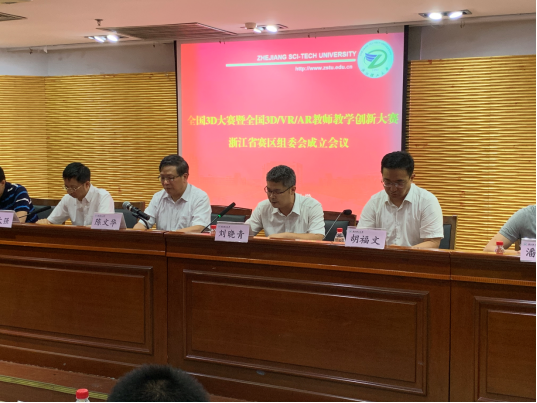 6月29日,全国3D大赛暨全国3D/VR/AR教师教学创新大赛(以下简称“全国3D两赛”)浙江省赛区组委会成立大会在365英国上市官方网站顺利召开,本次会议由365英国上市官方网站365英国上市官方网站副院长胡明主持,365英国上市官方网站副校长陈文华、全国3D大赛组委会副秘书长刘晓青、全国3D“两赛”浙江省赛区组委会副主任顾大强、全国3D/VR/AR教师教学创新大赛专委会委员胡福文、365英国上市官方网站教务处副处长蒋科坚、杭州职业技术学院教务处副处长潘建锋、365英国上市官方网站教师发展中心副主任王森,以及来自365英国上市官方网站、杭州电子科技大学、中国计量大学、杭州职业技术学院、浙江农林大学、浙江科技学院、浙江水利水电学院、台州学院、嘉兴学院、浙江大学城市学院、衢州学院、宁波工程大学、浙江大学宁波理工学院等22所高校的代表出席会议。