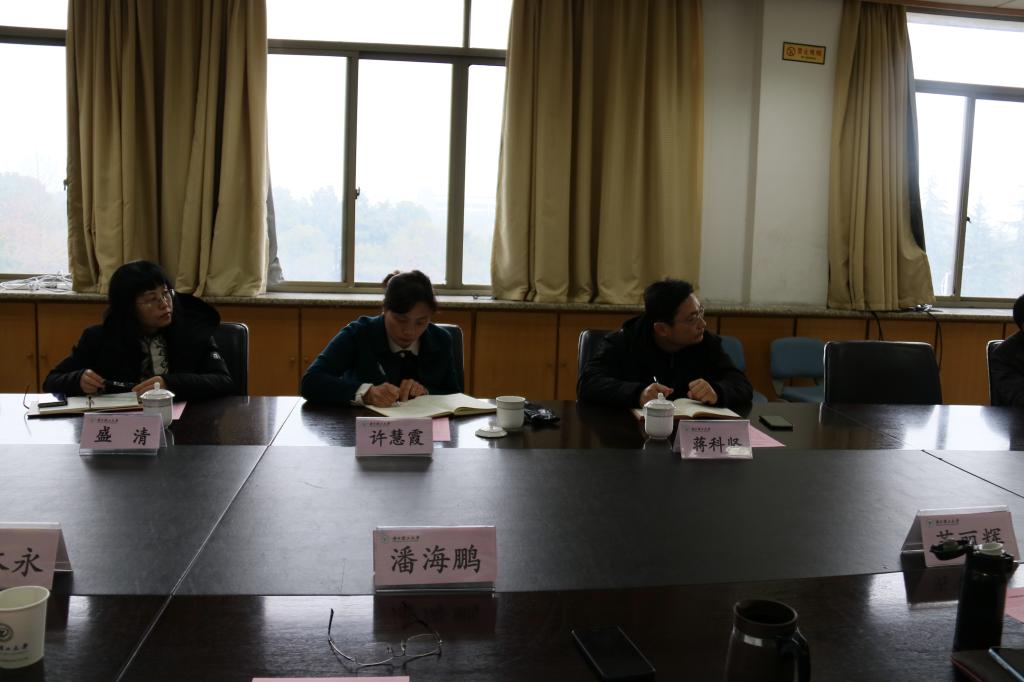 会上,许慧霞对学院重视调研工作表示感谢,同时祝愿学院各项工作在新的一年再创佳绩勇攀高峰,同时也表示要做好相关的服务工作。随后,潘海鹏介绍了学院情况、胡明汇报了学院本科教学情况、俞高红汇报了学院实验室建设情况等。会议重点对本科教学、专业认证和实验室建设等进行了研讨。盛清和蒋科坚分别就研讨中提出的问题进行了答复。