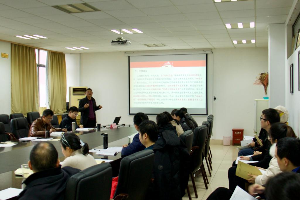 2020年1月3日上午,365英国上市官方网站“不忘初心、牢记使命”主题教育总结会、2019年度党支部书记现场述职会暨党委理论学习中心组会在学院322会议室召开。学院党委书记潘海鹏,副院长俞高红、党委副书记王吴芳,以及各系(中心)、办公室负责人、师生党支部书记参加会议。会议由王吴芳主持。