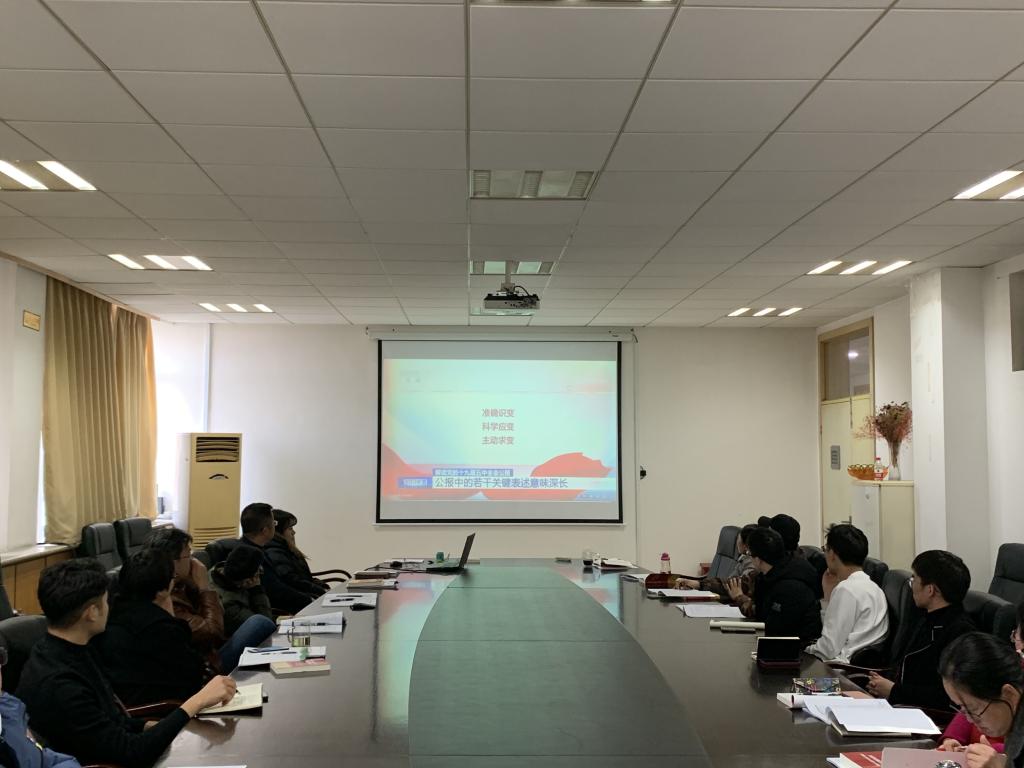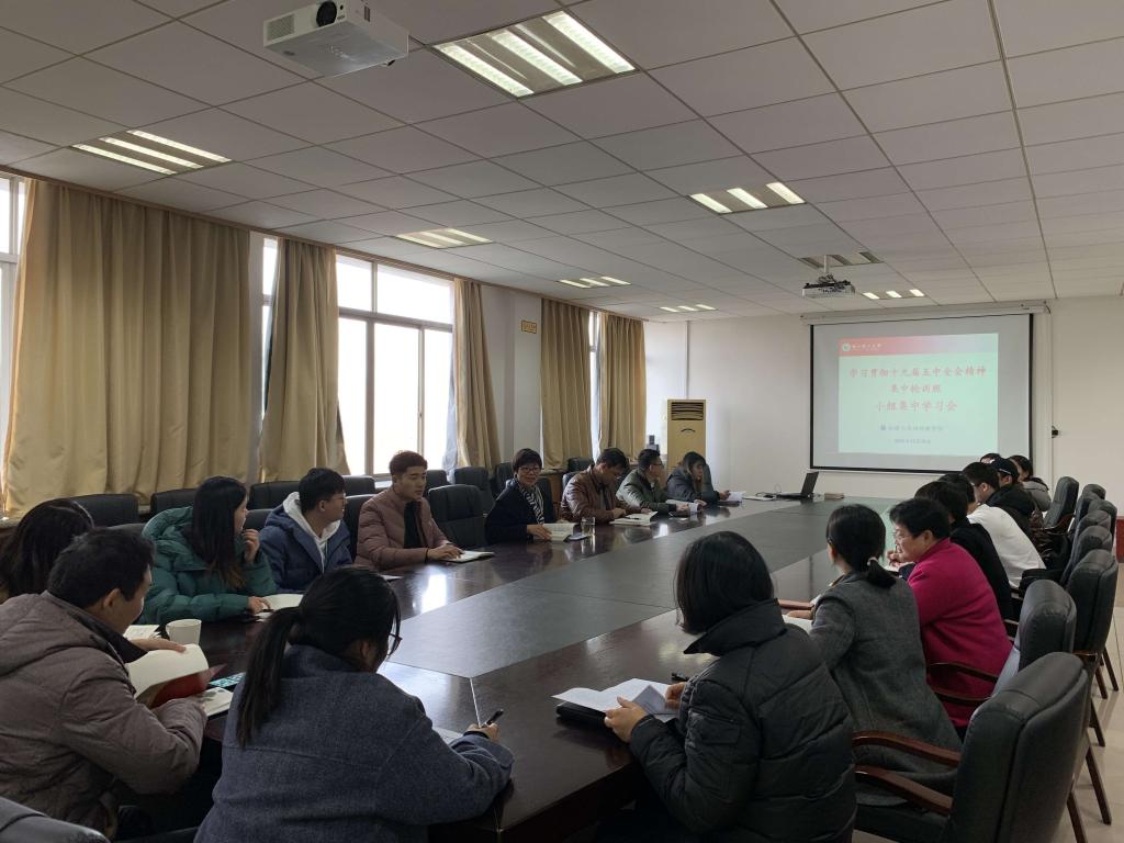 12月24日下午,365英国上市官方网站学习贯彻党的十九届五中全会精神集中轮训班365英国上市官方网站小组在15-322会议室召开集中自学会,学院党政领导、“双高双强”型年轻干部、师生党支部书记、组织员等参与学习。