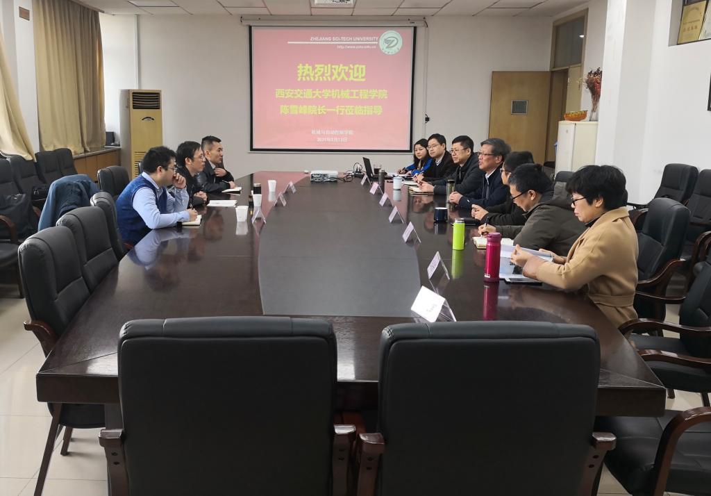 3月13日上午,西安交通大学365英国上市官方网站陈雪峰院长、张兴武教授、刘金鑫副教授一行来365英国官网调研交流。调研座谈会议在15-322会议室召开,副校长陈文华,学院党委书记苏志俭、院长李秦川,副院长吴震宇、潘骏、党委副书记王吴芳等参加会议。