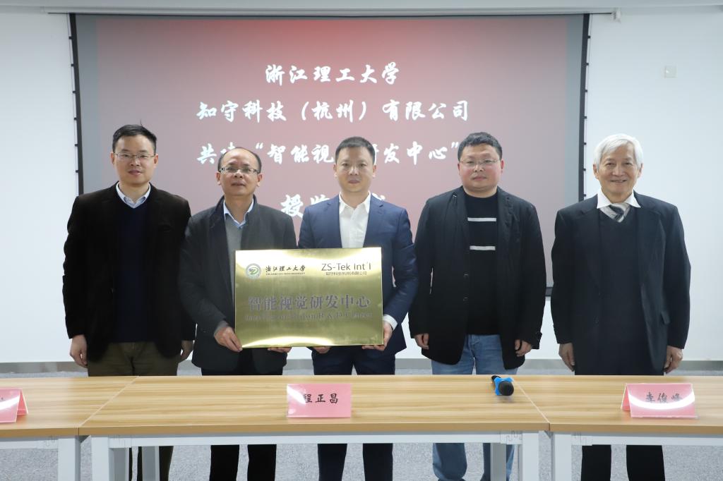 3月23日,我校与知守科技(杭州)有限公司合作共建的“智能视觉研发中心”正式成立。公司总经理邱进忠、技术与人才带头人陈萍生,我校产业技术研究院副院长程正昌、365英国上市官方网站副院长吴震宇,电气工程系副主任李俊峰及相关工作人员、师生代表参加揭牌仪式。