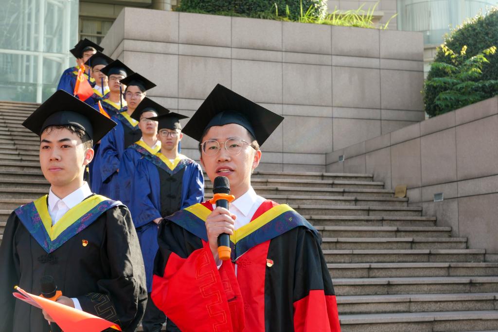 毕业生党员代表徐灵敏、全振潭等人在大会上向党旗报告,汇报了自己深造、就业等情况,他们中有人继续坚守科研阵地,在专业技术创新领域攻读博士后,有人进入研究生支教团为西部建设贡献力量,有人加入了基层公务员的队伍,立志以实干履行职责与使命。他们是广大机控学子勇担新时代使命的有力诠释,也是为服务国家、人民贡献力量的生动写照。随后由支部书记为新发展毕业生党员佩戴了党徽,并与大家一起在党旗前庄严宣誓,重忆入党初心。