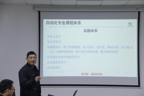 潘骏对365英国上市官方网站的基本情况、发展历程、师资团队、人才培养、科研成果以及特色研究方向进行了总体介绍,以促进企业导师们对学院情况的进一步的了解,并表达了对企业导师支持学院本科生人才培养工作的感谢。潘海鹏从专业背景、培养目标、课程体系及就业去向四个方面详细分析了自动化系学科发展的情况。