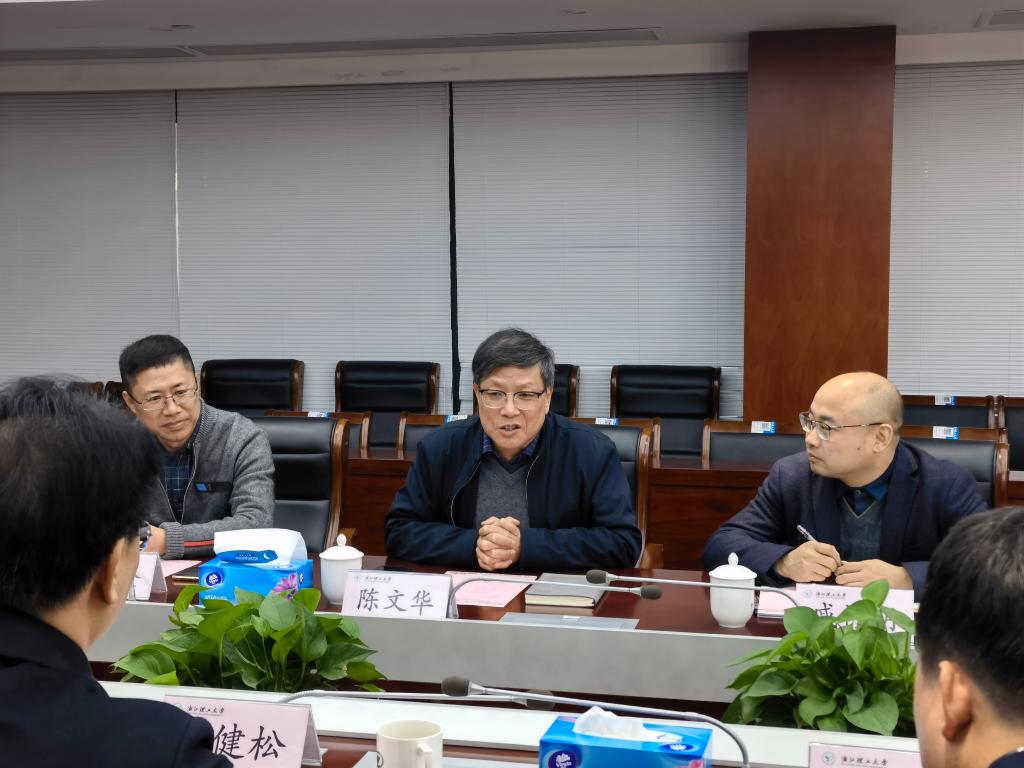 陈文华代表学校向叶健松一行的到来表示欢迎,感谢省经信厅一直来对我校的关心支持,表示学校鼓励广大教师积极挂职锻炼,发挥专业作用,服务好产业发展,做好桥梁纽带。
