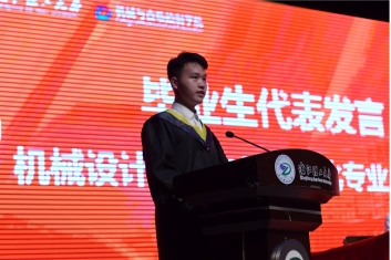 学院95级校友,杭州锐冠科技有限公司董事长陈小兵作为校友代表发言,他用自己的创业经历鼓舞毕业生们将自己的爱好与理想合二为一,通过终身学习不断积累经验,不断学习他人身上优秀的品质,坚持自己最初的梦想和理想。他祝愿师弟师妹们未来一切顺利,事业有成,为国家、为社会多做贡献,为母校争光,实现自己的人生价值!