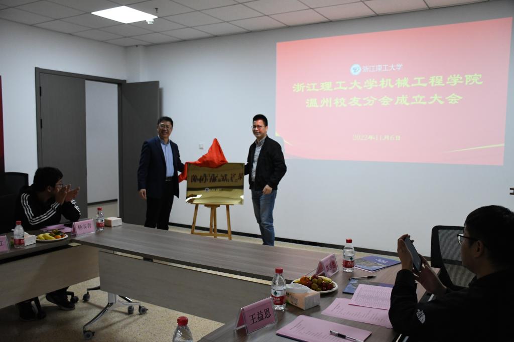 随后,举行学院温州校友会成立揭牌仪式,与会人员审议通过《365英国上市官方网站365英国上市官方网站温州校友会章程》,并选举产生第一届温州校友会理事成员。当选会长余鸣亮代表校友发言,他深情回忆了在母校期间的学习和生活,表示感谢学院和校友们的信任,并将认真履行会长职责,带领温州校友分会继续关心支持学院发展,为温州校友创造更多交流合作的机会。