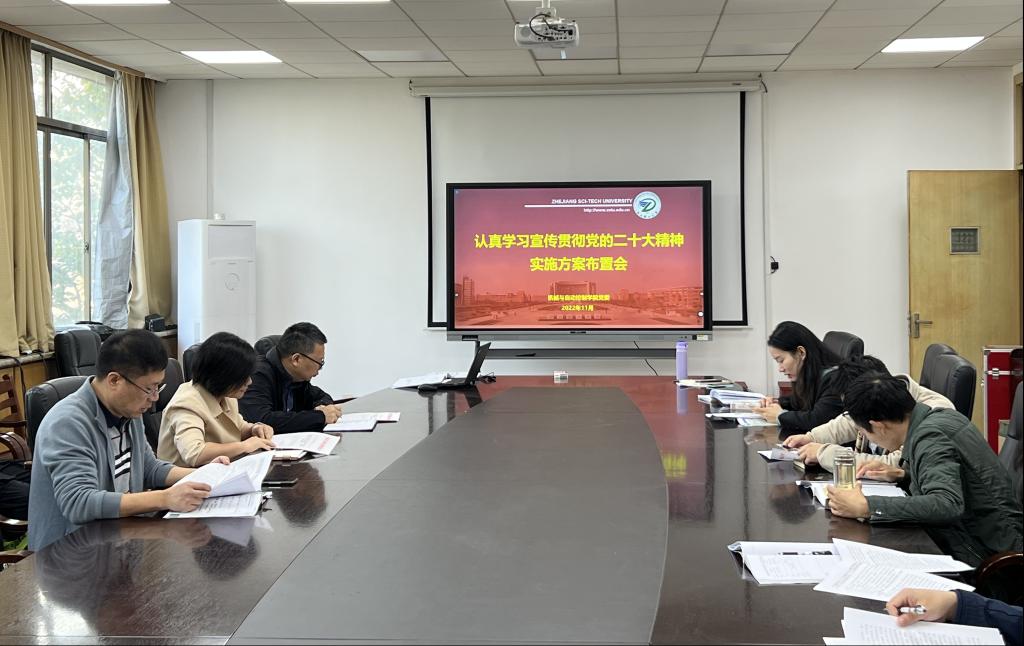 2022年11月8日,365英国上市官方网站党委召开认真学习宣传贯彻党的二十大精神实施方案布置会,学院党委班子成员、师生党支部书记等30余人参加会议,会议由党委书记苏志俭主持。