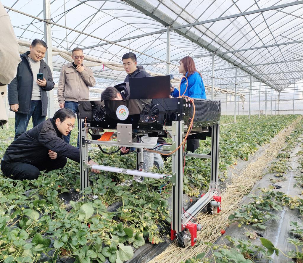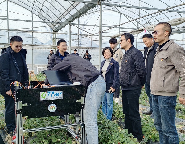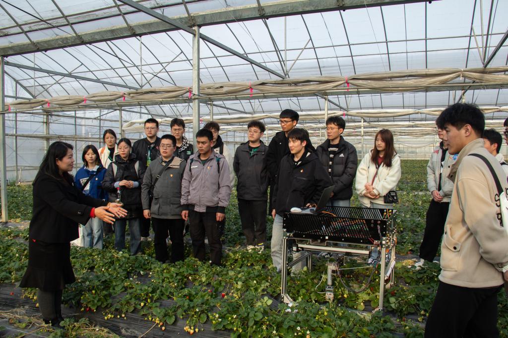 图像识别、精准定位、路径规划、精准采摘……农业机器人与装备创新团队指导老师杜小强,一边指导操作团队自主研发的草莓采摘机器人工作,一边说,“今天来到嘉善县我们感受颇多,作为一名农业机械领域的研究者,我们知农、爱农、学农、用农,教育引导更多的年轻一代专注农业机械研发,志愿用所学知识为浙江率先实现‘两个先行’贡献属于自己的一份力量”。