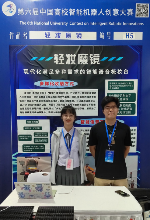 由于市面上目前售卖的美妆辅助工具基本只有化妆镜和梳妆台这两类,并没有集化妆收纳、美妆镜于一体的智能机器人装置。本着大胆创新的理念,团队研发了这款“轻妆魔镜”智能居家机器人,它拥有智能收纳化妆刷、化妆品,隐形眼镜过期提醒,智能化妆镜补光,化妆镜自清洁等功能,使人们在化妆时最大化地解放双手。