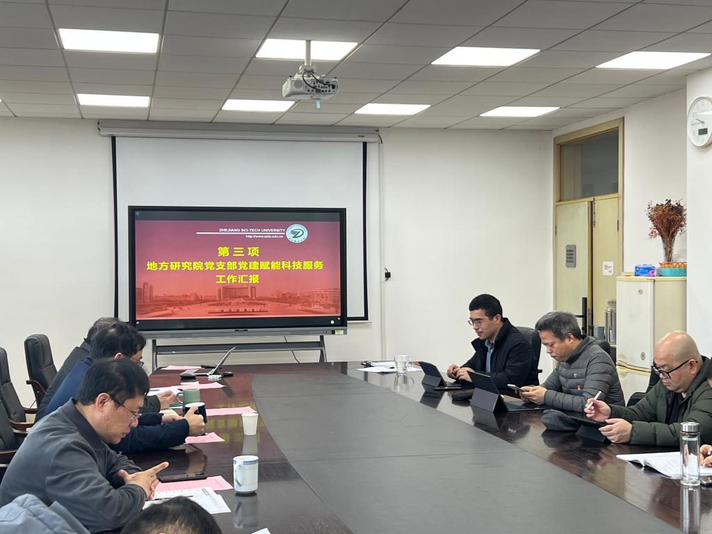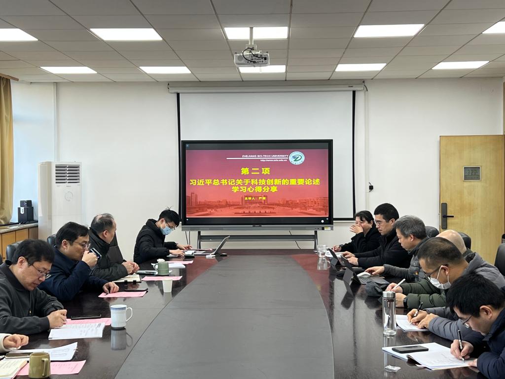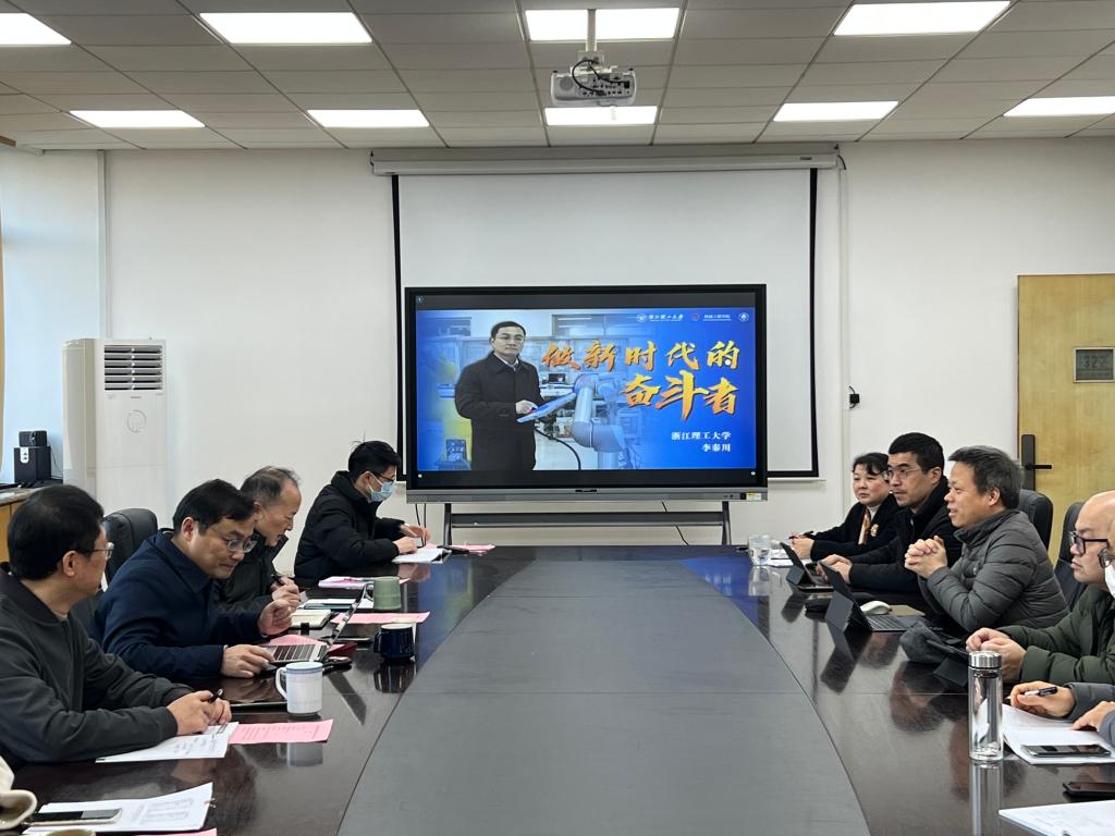 与会人员集体围绕习近平总书记关于科技创新的重要论述展开学习心得分享交流,学院学术副院长严博、院长助理陈刚等作主题发言。随后,学校龙港印包制造研究院院长彭来湖和平阳先进印包装备研究院院长向忠分别围绕党建品牌打造、人才团队建设、平台建设、企业服务四个方面作2023年度地方研究院党建赋能科技服务工作汇报。