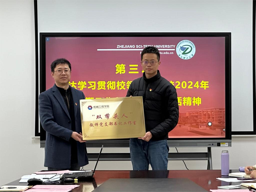 随后,举行第二批学院“双带头人”教师党支部书记工作室授牌仪式,苏志俭向第二批“双带头人”教师党支部书记工作室授牌。苏志俭表示,学院党委全面贯彻落实高校党建“四个融合”行动,在建立首批“双带头人”教师党支部书记工作室基础上,进一步做大做强基层党组织,希望工作室旗帜鲜明讲政治、固本强基担使命、攻坚克难当先锋,发挥示范引领作用,推动党建更好融合事业发展、推动学院事业发展更上台阶。