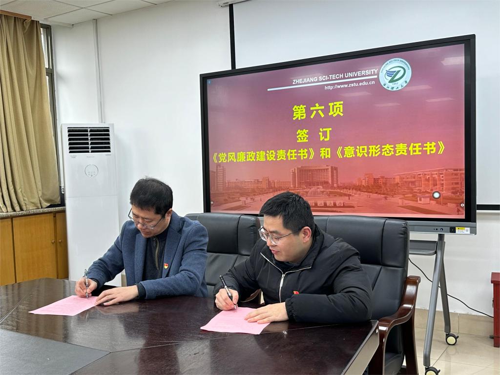会上,学院党委与各师生党支部签订《党风廉政建设责任书暨党支部年度个性化目标责任书》和《意识形态责任书》。