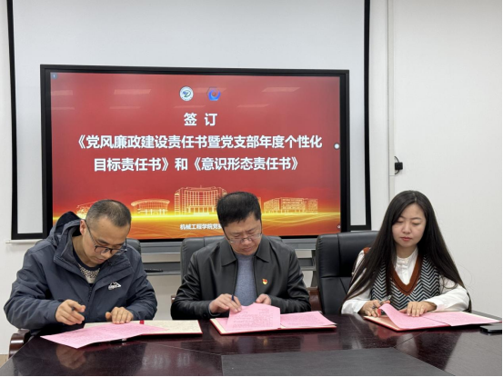 随后,为扎实落实党风廉政建设和意识形态工作责任制,推进“党建+X”特色发展,促进党建与事业深度融合,学院党委与各基层党支部签订《党风廉政建设责任书暨党支部年度个性化目标责任书》和《意识形态责任书》。