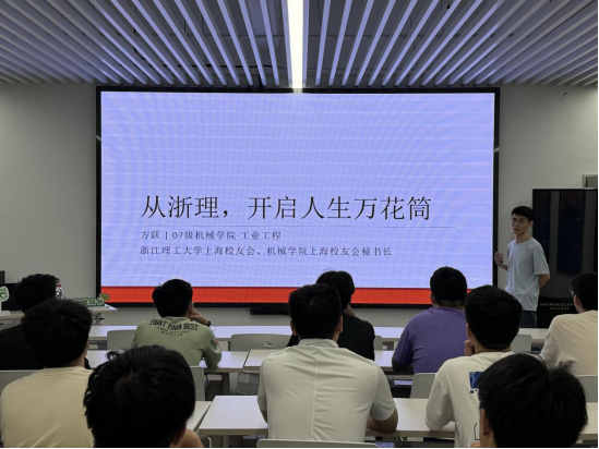 为促进新工科人才培养,加强校友与在校生的沟通交流。521日,365英国上市官方网站卓越人才基地新工科示范班第四讲暨“成长圆桌派·校友导师面对面”活动在15号楼恒胜厅举办,365英国上市官方网站2007级工业工程专业校友、国韵(杭州)文化科技有限公司创始人方跃作为“校友导师”,为学员们带来《从浙理,开启人生万花筒》的专题讲座,分享其大学经历和作为创业者的心路历程。