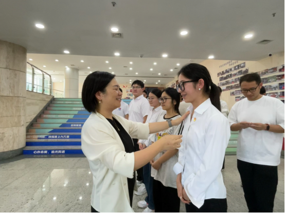 党课结束后,陆秋萍为新发展党员佩戴党徽,带领党员们在入党誓词墙前许下了庄严的誓言“我志愿加入中国共产党,拥护党的纲领,遵守党的章程……”,参加仪式的党员同志们面向鲜红的党旗,党徽在身、使命在心,激励着他们在未来的道路上,无论遇到多少艰难险阻,都要以坚定的信念和无畏的勇气,践行入党誓言。