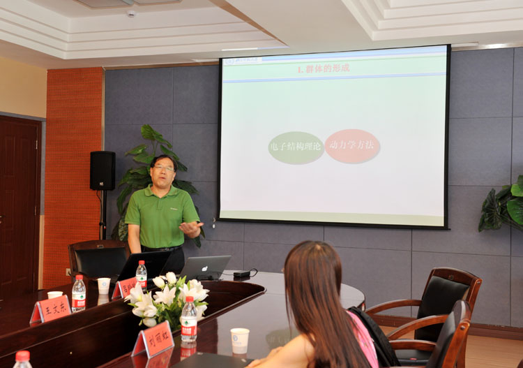 在学术交流会上,方维海院士以《理论与计算光化学群体》为题,从计算化学“电子结构理论”和“动力学方法”两个方面展开,就自己及团队的“建立量子耗散随机场理论与级联方程方法”、“Pt配合物的发光性质”以及“萤火虫发光过程理论与计算模拟”等诸多研究成果做了详细讲述。北京师范大学刘丽虹博士以《Ab InitioMulti Spawning Method and its applications》为题,详细介绍了Spawning Method的研发及其应用。BEAT365官网副院长吕玲玲博士以《多自旋态催化反应的自旋磁效应及非绝热动力学研究》为题,从“实验方向”、“理论方向”“研究方案及措施”等方面;李志锋博士以《过渡金属亲金属键及其光学性能研究》为题,从“过渡金属亲金属键及其光学特性构效研究”和“过渡金属催化C(SP3)氢键构建C-C键研究”两个方面;李会学博士以《有机半导体分子间及分子内电荷转移的理论研究》为题,从“理论模型”、“磷光光谱的理论研究”等方面;袁焜博士以《阴离子识别及纳米尺度上客体化学》为题,从“小分子、超分子基元间弱键结构与性质”、“设计创造工具分子和超分子基元新体系”等方面,分别就自己的研究方向和研究成果向方院士做了汇报。方院士就BEAT365官网理论与计算化学学科团队的研究方向、研究进展等进行了交流指导。