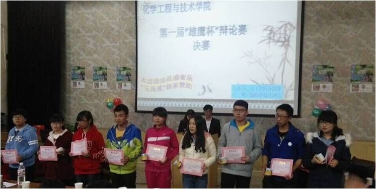 比赛现场气氛紧张热烈,双方辩手你来我往、侃侃而谈,场下观众激情澎湃、掌声连连响起。各晋级队伍旁征博引,进行了激烈的交锋,互动环节更是将现场气氛活跃起来。经过2场激烈的比赛,15级化学一班获得第一名,15级化学三班获得第二名,14级化学二班获得第三名,14级应化班获得优秀奖。徐明强、刘春云、金丽霜、范志涛四位同学获得最佳辩手奖,韩佳桐、卢丹等12位同学获得优秀辩手奖。