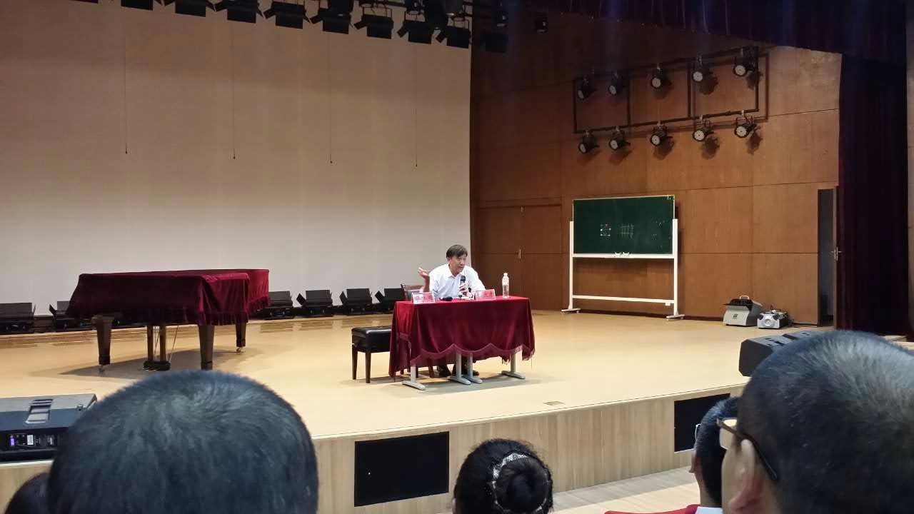 2016年6月27日晚,革命史诗大合唱《红旗颂》词作者刘文彦先生亲临天水师范学院,在音乐厅为BEAT365官网教职工及学生做了题目为《红歌激扬新时代——革命史诗大合唱<红旗颂>创作背景》的报告。