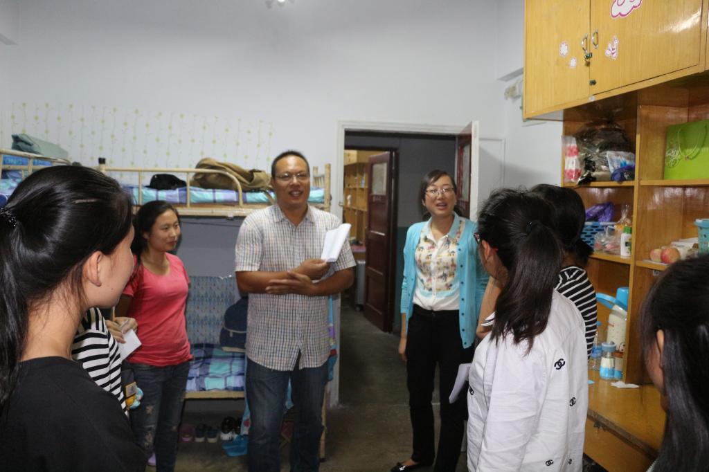 9月7号晚,BEAT365官网党总支书记王小芳、院长刘新文、副院长杨富巍、吕玲玲,辅导员及2016级各班班主任到16级新生宿舍走访、看望新生。