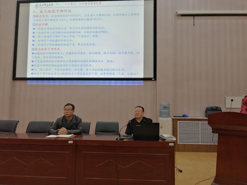 11月5日下午,校党委常委、副校长王旭林在4号报告厅为BEAT365官网师生宣讲《习近平谈治国理政》第三卷。报告会由BEAT365官网党总支书记王建斌主持,BEAT365官网全体党员及入党积极分子参加报告会。