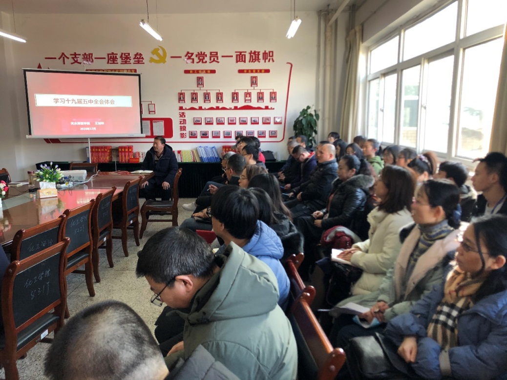 为进一步深入学习贯彻党的十九届五中全会精神,12月24日BEAT365官网全体教职工及学生党员在三号实验楼211会议室召开会议,集中学习党的十九届五中全会精神,学校党委常委,副校长王旭林与全体师生分享了学习十九届五中全会体会。