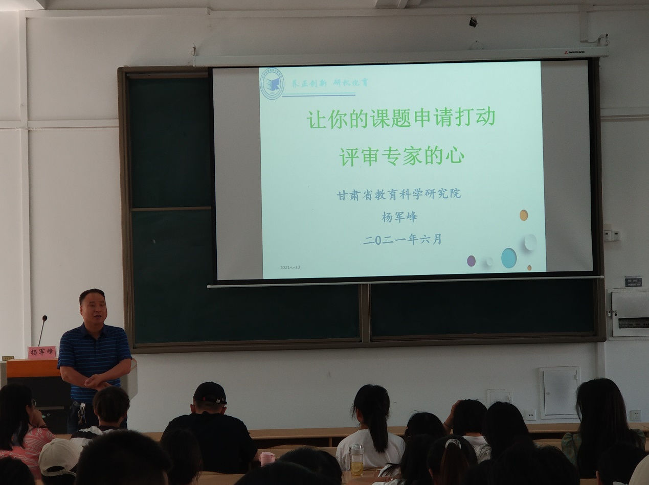 杨武教授作了题为《性能导向的功能COFs和MOFs的设计合成与应用》的报告,深入浅出地为师生们介绍了COFs和MOFs材料在荧光传感、电化学传感及超级电容器等方向的研究工作。杨军峰老师结合多年教育教学课题评审工作经验,作了题为《让你的课题申请打动评审专家的心》的报告,详细地为师生们阐述了教育教学课题申报的各个环节常出现的问题和注意事项,并就如何科学选题,合理论证进行详细地指导和说明。报告会上,相关教师和学生结合自身开展的科研、教研课题与两位杨老师进行了深入的交流,师生们获益匪浅。