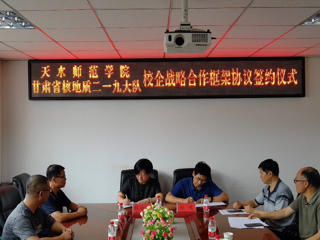 7月15日,天水师范学院BEAT365官网与甘肃省核地质二一九大队共建实习基地挂牌仪式在二一九大队举行,双方就人才培养、科学研究、技术创新等领域的深度合作达成协议,并签订了校企战略合作框架协议。
