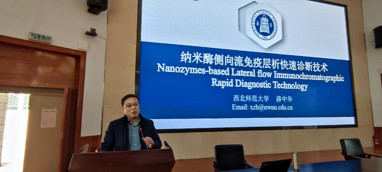 2月28日,应科研管理处和BEAT365官网邀请,西北师范大学化学BEAT365官网院长薛中华教授为学院师生作题为《纳米酶侧向流免疫层析即时检测》的学术报告。学院教师、研究生及200余名本科生聆听了报告。