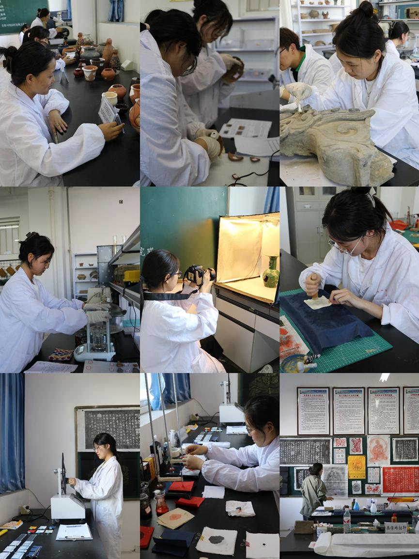 文物保护技术专业依据培养方案、毕业要求和就业实际,制定了内容丰富、任务明确的实践实训方案,每个年级的实训任务和实训目标不同,主要突出提升学生文物保护实践技能。2023级集中开展了陶器制作工艺实践课程,同学们在学习古代制陶工艺的基础上,反复训练,采用不同传统制陶工艺制作了种类丰富,器型多样、装饰精美的陶器。2021、2022、2023级文物保护技术专业学生举办了文物摄影比赛、陶质、纸质等文物修复技能大赛,通过比赛,同学们在巩固理论知识的基础上,文物保护实践技能不断提升。除了实验室实践实训外,学院组织2021、2022、2023级学生前往宝鸡大唐秦王陵、宝鸡青铜器博物馆、中华石鼓园开展实践调研活动,通过实地参观学习,同学们对周秦时期青铜器及青铜文化有了更加深刻的认识。