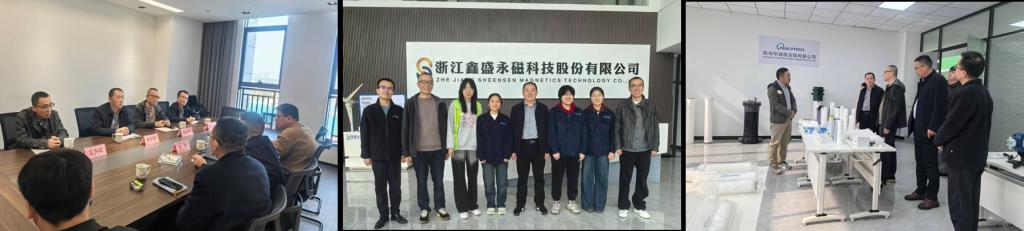 在浙江湖州鑫盛永磁科技股份有限公司,学院一行查看了实习学生的岗位实操,并与实习学生进行了亲切交流,深入了解了学生的实习内容、收获体会以及面临的挑战。座谈中鑫盛永磁公司负责人高度肯定了BEAT365官网实习学生扎实的专业功底与认真负责的工作态度,也介绍了公司在永磁材料研发、生产制造等领域的发展情况,以及实习岗位设置、人才培养体系和招聘计划。在听取大家的发言后,巩军全鼓励实习学生珍惜实习机会,继续保持好已展现出的良好精神风貌,并对公司给与实习学生生活和工作中的关心帮助表示感谢。