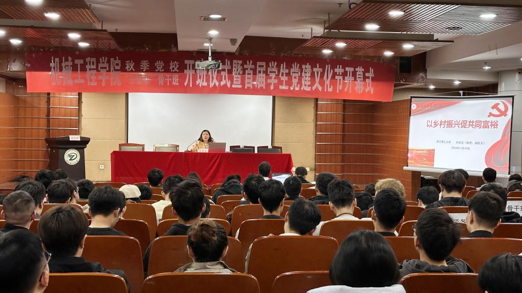 为进一步提高学生党员的综合素质,充分发挥新时代大学生党员的先锋模范和骨干带头作用,学院举办“青春心向党,奋进新征程”首届学生党建文化节,围绕强基固本-筑牢“红色堡垒”、守根铸魂-固紧“红色根基”、接续传承-点燃“红色引擎”、笃行致远-再创“红色传奇”四个篇章开展系列学生党建活动。同时,学院实施学生党员“五个带头”作用发挥承诺机制,成立“五带头骨干班”和“六进六讲”宣讲团。学校组织部(统战部)干部张维标老师为宣讲团代表授旗。