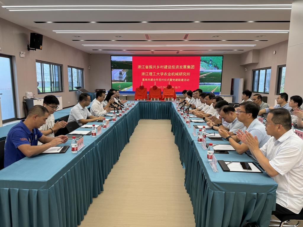 为进一步加强党建引领事业发展,充分整合校内外资源优势,6月29日上午,农业机械团队党支部与浙江省振兴乡村建设投资发展集团(简称“省乡投集团”)党委举行基地共建合作签约仪式暨党建联建活动。省乡投集团党委委员、副总经理陈军,校发展规划处处长俞高红、365英国上市官方网站党委书记苏志俭,农业机械团队党支部书记、农业机械研究所所长陈建能出席仪式,双方教职工党员代表参加仪式。